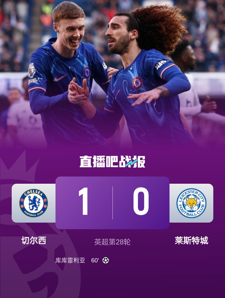 升至英超第4!切爾西1-0送萊斯特5連敗 庫(kù)庫(kù)雷利亞致勝帕爾默失點(diǎn)