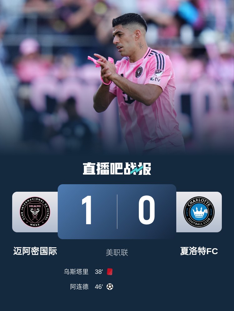 美職聯(lián)本輪邁阿密國(guó)際1-0擊敗夏洛特FC,梅西替補(bǔ)未出場(chǎng),阿連德破門(mén),蘇亞雷斯助攻。
