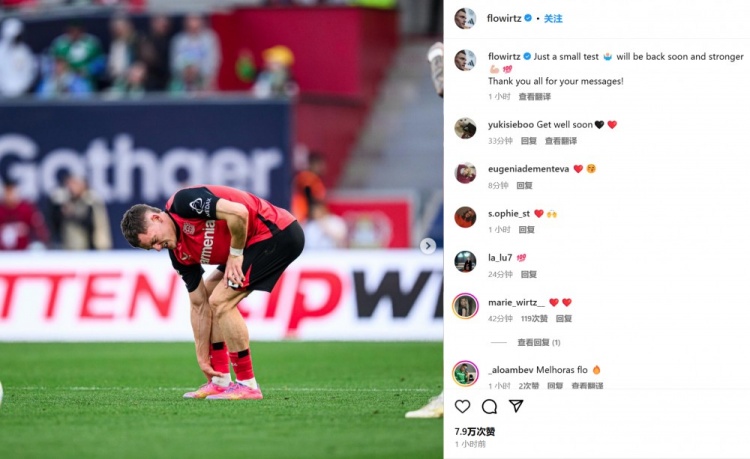 勒沃庫森官方已經(jīng)宣布維爾茨缺席主場迎戰(zhàn)拜仁的歐冠次回合,并且將缺陣數(shù)周。他本人也通過社媒曬出自己的比賽照,并表示:“只是一次小考驗?????????♂?我將很快以更強的姿態(tài)回歸????????????感謝球迷們發(fā)來的慰問信息。”