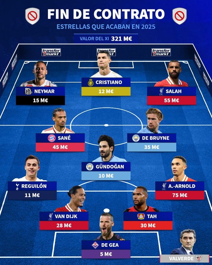 德轉(zhuǎn)合同年球員最貴陣容: