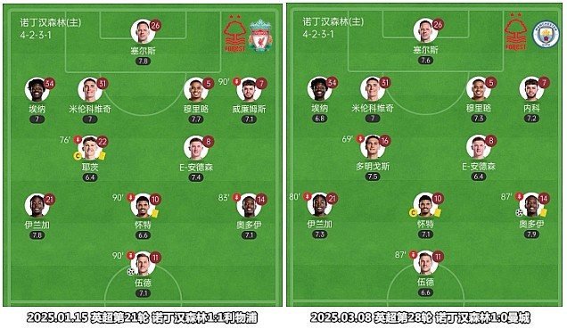憑借赫德森-奧多伊的精彩進球,諾丁漢森林主場擊敗曼城,從直接競爭對手那里奪得了價值連城的“六分”,在Big6球隊身上拿分已經成為這支球隊的常規(guī)操作。聯賽上半程,諾丁漢森林主場送給利物浦賽季唯一敗仗,客場戰(zhàn)平切爾西,從狀態(tài)不佳的曼聯和熱刺那里賺足6分,踢到第17輪時所取得積分便已經超過了上賽季的分數(32分)。