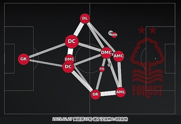 過去兩段成功的執(zhí)教經歷,努諾-桑托都是主打三中衛(wèi)/五后衛(wèi)陣型。來到諾丁漢森林后,葡萄牙人根據現有人員特點,改變了后防和中場的力量配比,研發(fā)了極具特點的451陣型。