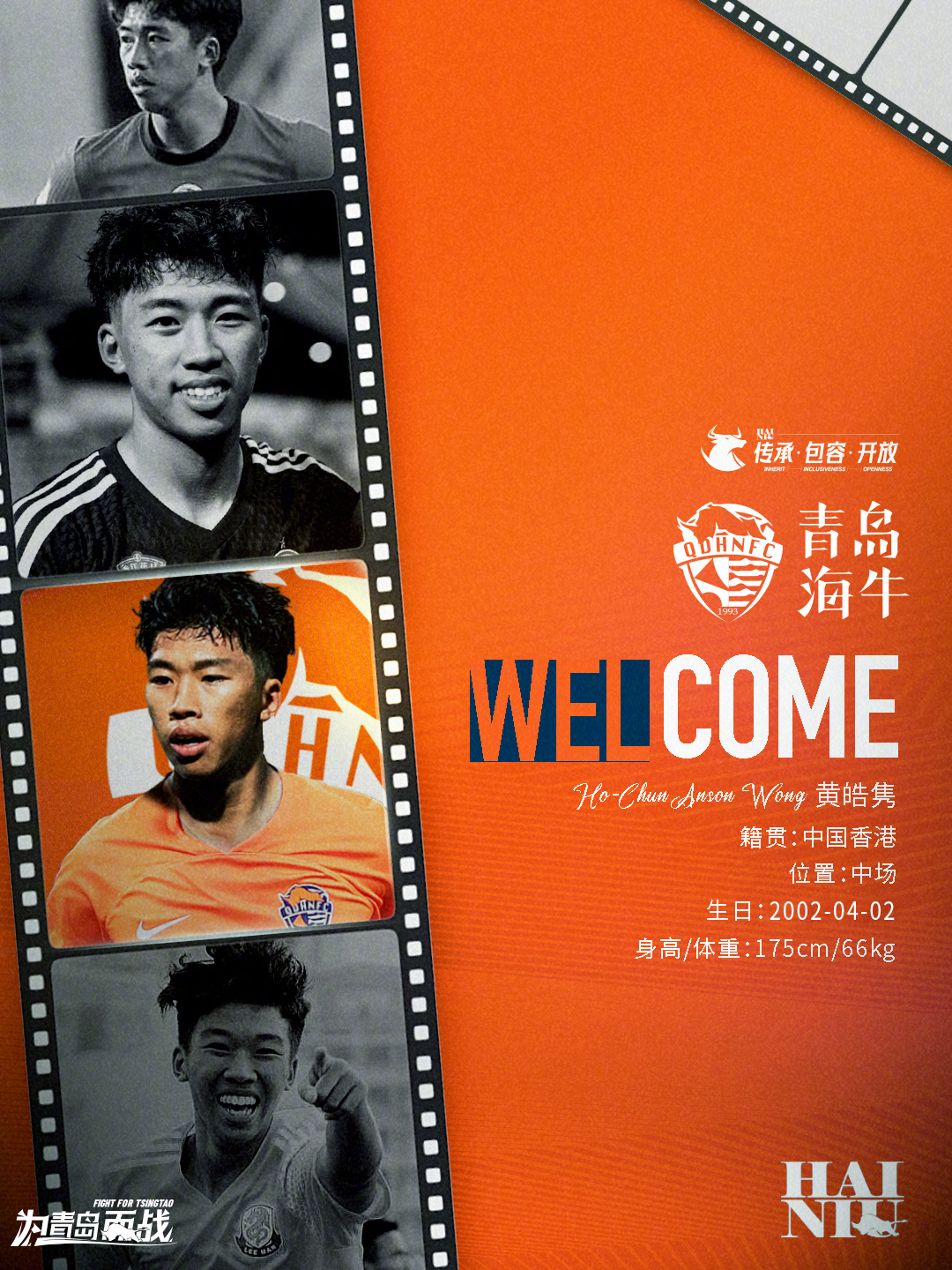 經(jīng)與中國(guó)香港東方足球俱樂部友好協(xié)商并達(dá)成一致,中國(guó)香港球員黃皓雋轉(zhuǎn)會(huì)加盟青島海牛足球俱樂部,黃皓雋與俱樂部簽署兩年合約,歡迎他的到來。