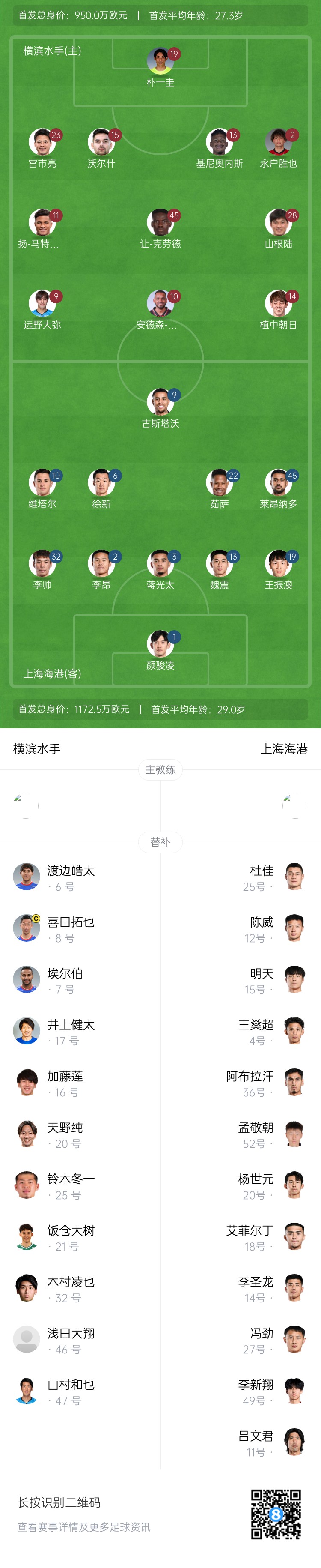 03月11日訊 北京時(shí)間18點(diǎn),亞冠精英聯(lián)賽1/8決賽東亞區(qū)次回合,上海海港客場(chǎng)挑戰(zhàn)橫濱水手,賽前官方公布兩隊(duì)首發(fā)陣容。