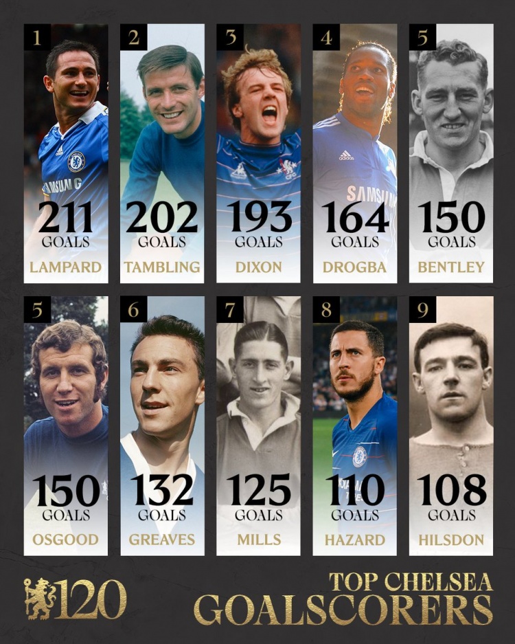 3月11日訊 切爾西俱樂(lè)部成立120周年,俱樂(lè)部官方社媒曬出了截至目前隊(duì)史射手榜,蘭帕德211球居首。切爾西隊(duì)史射手榜:1、蘭帕德:211球2、鮑比-坦布林:202球3、凱里-迪克森:193球4、德羅巴:164球5、羅伊-本特利:150球彼得-奧斯古德:150球6、吉米-格里夫斯:132球7、喬治-米爾斯:125球8、阿扎爾:110球9、喬治-希爾斯頓:108球 本文標(biāo)簽: 足球 英超 切爾西