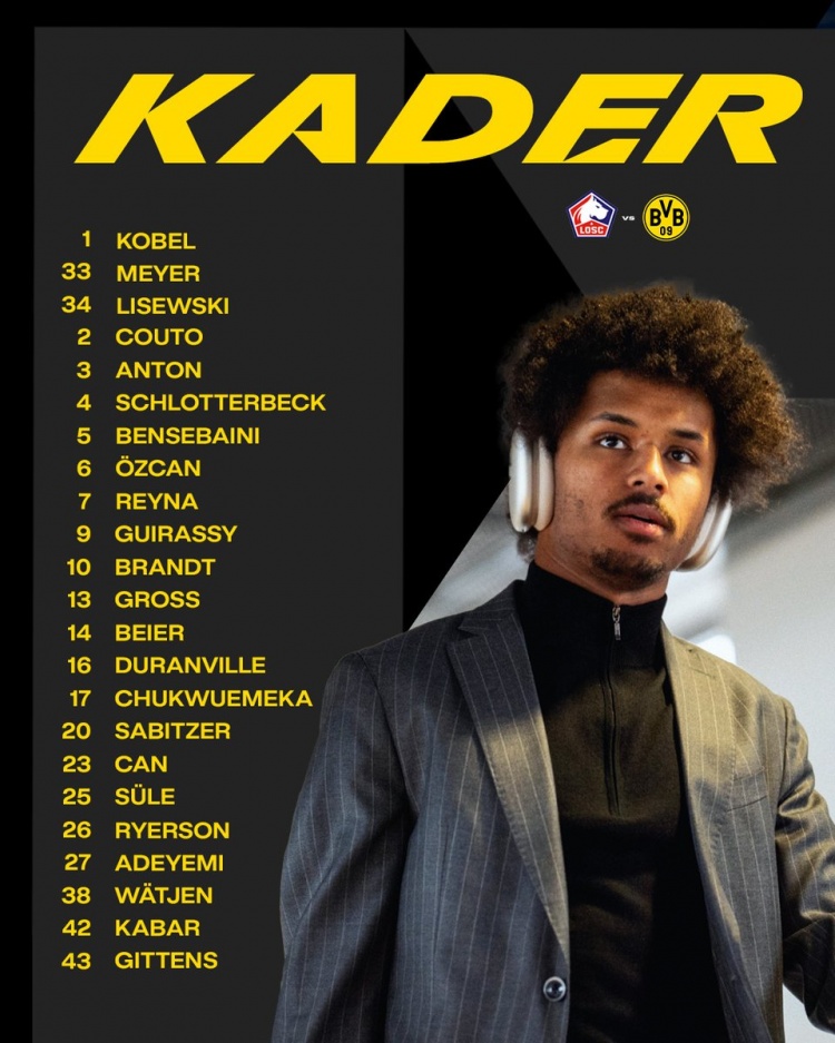 多特歐冠客戰(zhàn)里爾名單:
