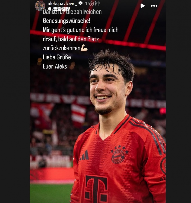 3月12日訊 拜仁20歲中場(chǎng)帕夫洛維奇在近日官宣將繼續(xù)因?yàn)楦腥救标?,他也在社媒發(fā)文。