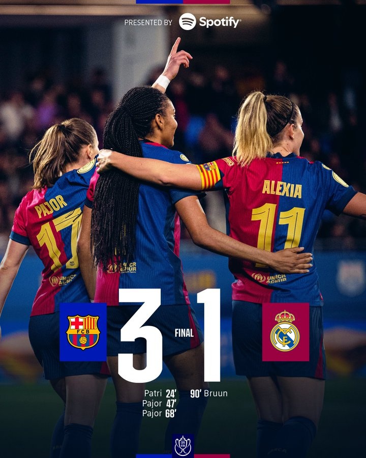 3月13日訊 今天凌晨,巴薩女足在皇后杯半決賽次回合主場(chǎng)3-1擊敗皇馬女足,總比分8-1淘汰對(duì)手,進(jìn)入決賽。巴薩女足是西班牙皇后杯的衛(wèi)冕冠軍,從2020年起,巴薩女足4次奪得了這項(xiàng)榮譽(yù),今年又再次殺入決賽。半決賽的另一邊,馬競(jìng)女足首回合客場(chǎng)2-0擊敗格拉納達(dá)女足,次回合還未踢。 本文標(biāo)簽: 足球 西甲 巴塞羅那