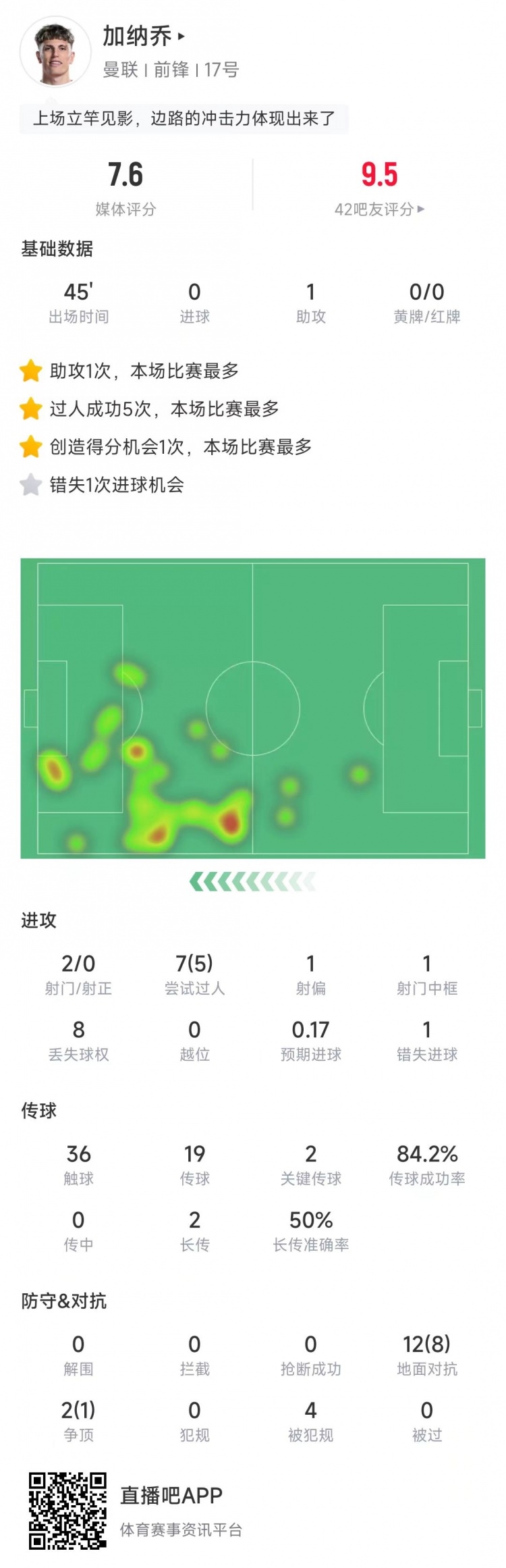 加納喬本場比賽數(shù)據(jù):
