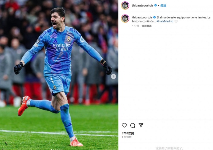 3月13日訊 皇馬在本輪歐冠點球淘汰馬競,庫爾圖瓦面對老東家表現(xiàn)神勇做出7次撲救,堪稱全場最佳。他也在賽后通過社媒曬出自己的狂奔慶祝照,并配文:“這支球隊的意志力永無止境!故事還在繼續(xù)……” 本文標簽: 足球 西甲 皇家馬德里 馬德里競技 歐冠