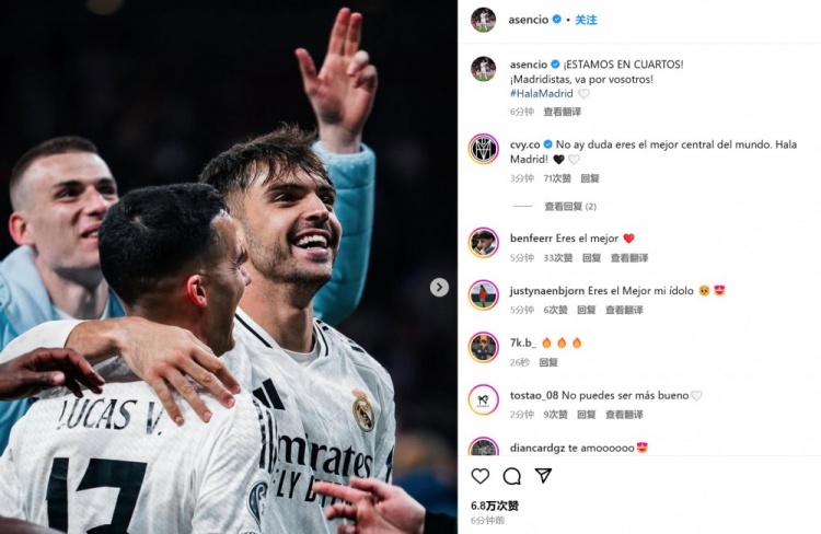 3月13日訊 皇馬在本輪歐冠點球淘汰馬競,小將勞爾-阿森西奧表現(xiàn)出色。他也在賽后通過社媒曬出晉級后的慶祝照,并喊話球迷:“我們晉級歐冠八強了!馬德里主義者們,這是獻給你們的!” 本文標(biāo)簽: 足球 西甲 皇家馬德里 馬德里競技 歐冠
