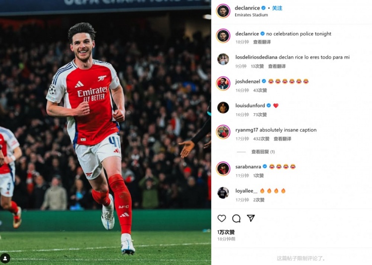 賴斯也在賽后通過社媒曬出自己進(jìn)球后的慶祝照,并調(diào)侃:“今晚沒有慶祝動(dòng)作的道德警察?!?/p>