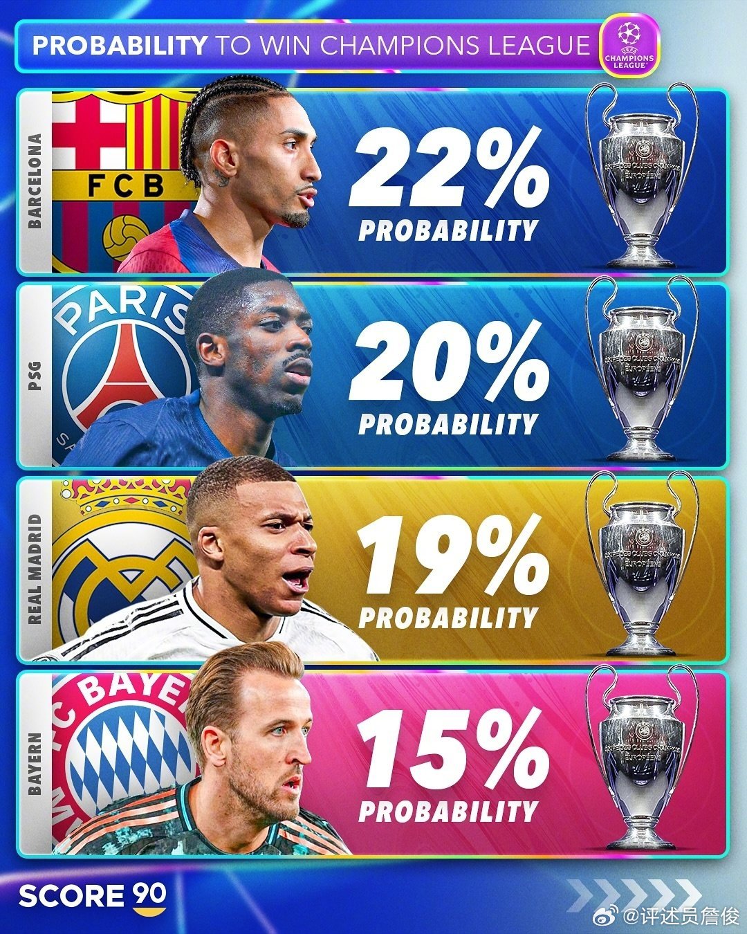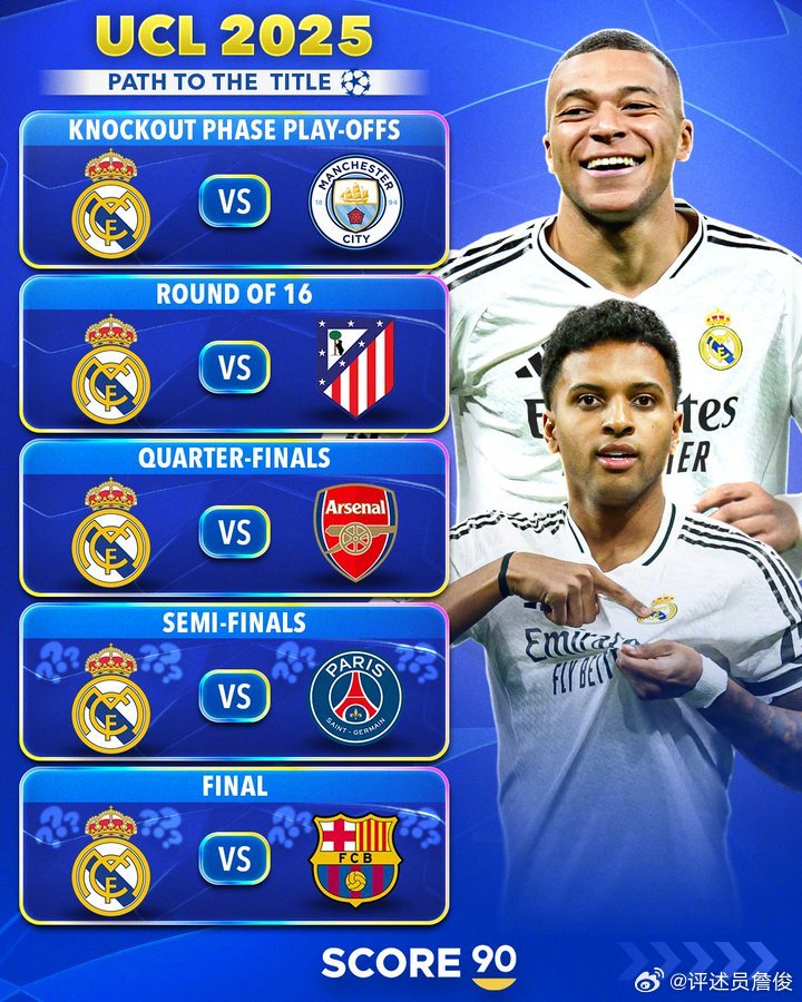 詹俊表示:皇馬本賽季的歐冠晉級(jí)之路險(xiǎn)阻重重,如果八強(qiáng)能夠淘汰阿森納有可能對(duì)陣大巴黎,決賽會(huì)是西甲國家德比么?別看太遠(yuǎn),下個(gè)月將是他們近19年來首次在歐冠遭遇槍手,阿森納的優(yōu)勢(shì)在于薩卡有望復(fù)出、聯(lián)賽爭冠機(jī)會(huì)不大專注拼歐冠。而皇馬三線作戰(zhàn),西甲與巴薩、馬競爭冠進(jìn)入白熱化階段,容易分心。八強(qiáng)對(duì)陣產(chǎn)生后,也有外媒預(yù)測(cè)巴薩、大巴黎奪冠的幾率比皇馬更大!