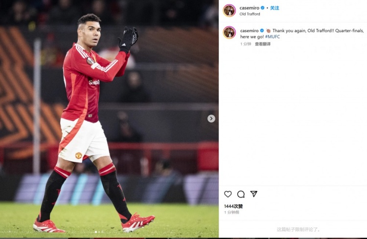 卡塞米羅也在被換下場(chǎng)時(shí)回報(bào)以掌聲,賽后還通過(guò)社媒曬出照片并配文:“再次感謝,老特拉福德?。?!歐聯(lián)杯八強(qiáng)戰(zhàn),我們來(lái)了!”