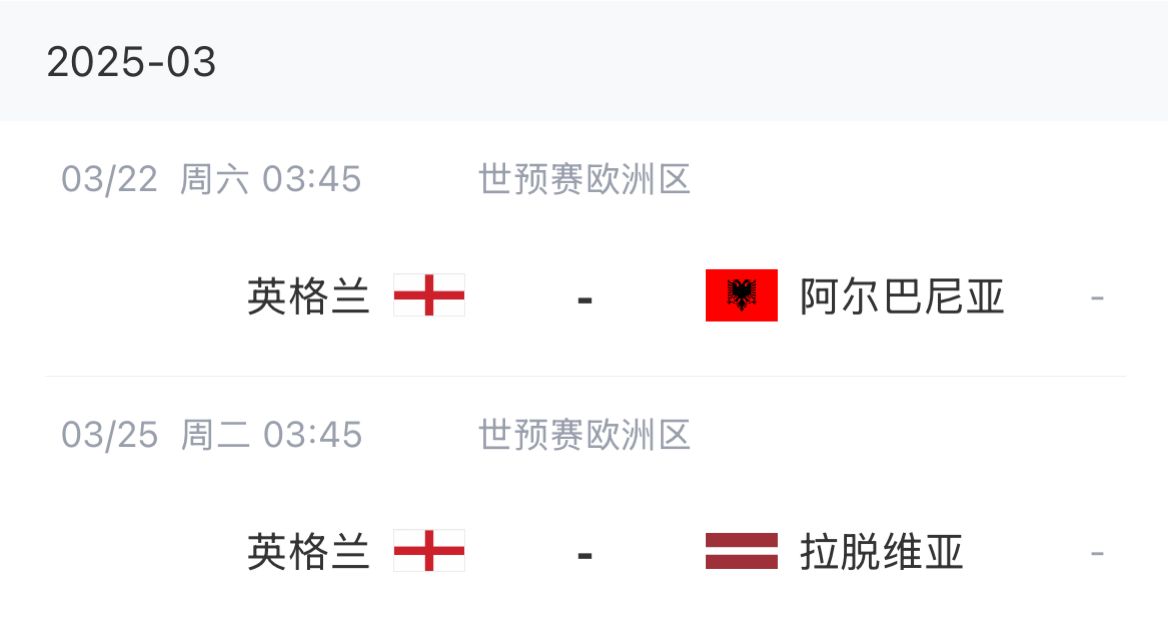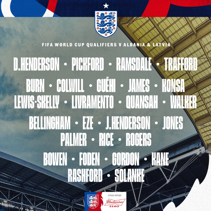 本期英格蘭隊將在3月底出戰(zhàn)兩場世預賽,對手分別是阿爾巴尼亞和拉脫維亞。