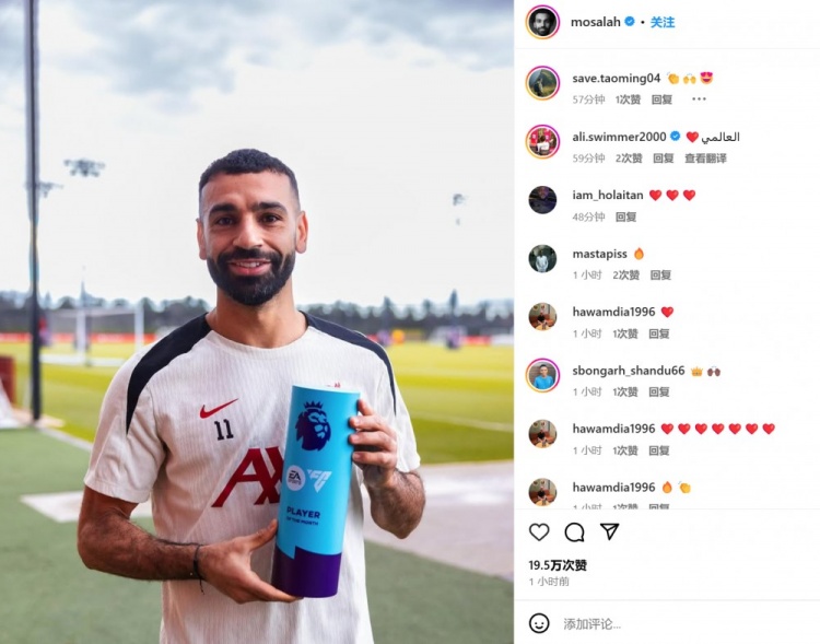 薩拉赫也通過社媒曬出了自己手捧獎(jiǎng)杯的照片,但并未附加文字內(nèi)容。這也是利物浦在歐冠出局后,法老首次更新社媒動(dòng)態(tài)。