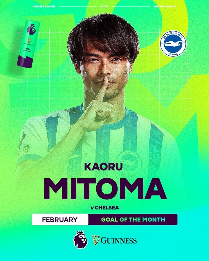 數(shù)據(jù)統(tǒng)計(jì)顯示,三笘薰已經(jīng)是第2次獲此殊榮,他在2023年8月憑借對(duì)陣?yán)顷?duì)的進(jìn)球而首次獲得英超月最佳進(jìn)球。歷史僅次于安德羅斯-湯森和B費(fèi)(均為3次獲得英超月最佳進(jìn)球)。