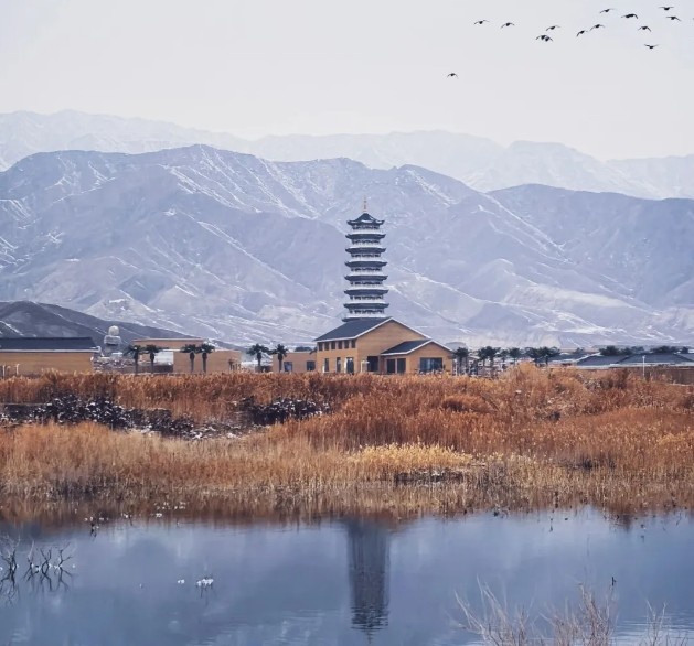 月亮泊戈壁濕地溫泉旅游度假區(qū)位于新疆天山南麓,阿克蘇市西南部,阿依庫勒鎮(zhèn)老子新村地界,阿克蘇“1+7+N”商貿文旅合作區(qū)范圍內,南鄰314國道,距阿克蘇市區(qū)約40公里,占地面積100平方公里。景區(qū)內有天地塔、雅丹峽谷、戈壁烽火臺、濕地野生動物保護區(qū)和五口天然泉眼等景觀,配套建設有溫泉度假酒店、武姬酒館、民宿等服務設施,因其地下溫泉水中富含硫磺等礦物質成分,經常在溫泉中洗泡可以治療和改善皮膚疾病,深受當?shù)鼐用竦南矏?,是一處集鄉(xiāng)村旅游和休閑康養(yǎng)等為一體的綜合性溫泉養(yǎng)生度假景區(qū)。2021年11月被評定為國家3A級旅游景區(qū)。本景區(qū)以“戈壁濕地溫泉”為核心特色,提供溫泉康養(yǎng)、生態(tài)觀光和文化體驗三大核心業(yè)務。景區(qū)內的天然硫磺溫泉常年保持在40℃左右,富含硫、鋰、氟等多種礦物質,具有顯著的養(yǎng)生療愈功效。溫泉區(qū)結合足療、玉療、沙療等項目,為游客提供多樣化的健康體驗,成為放松身心的理想之地。景區(qū)內分布著戈壁湖泊、濕地和蘆葦蕩等自然景觀,形成了獨特的生態(tài)風貌。濕地是候鳥遷徙的重要棲息地,每年春秋季節(jié),大雁、天鵝等珍稀鳥類在此棲息,吸引了眾多攝影愛好者和生態(tài)旅游者。戈壁與濕地交相輝映,夕陽下的月亮泊湖面波光粼粼,被譽為“人間凈土”,為游客提供了絕佳的觀光體驗。