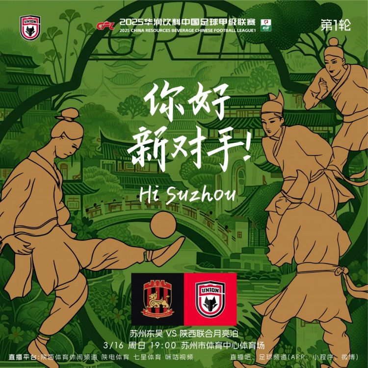 3月14日訊 3月16日19點(diǎn)中甲首輪,陜西聯(lián)合將在客場(chǎng)對(duì)陣蘇州東吳,賽前陜西聯(lián)合發(fā)布了本場(chǎng)比賽的創(chuàng)意海報(bào)。