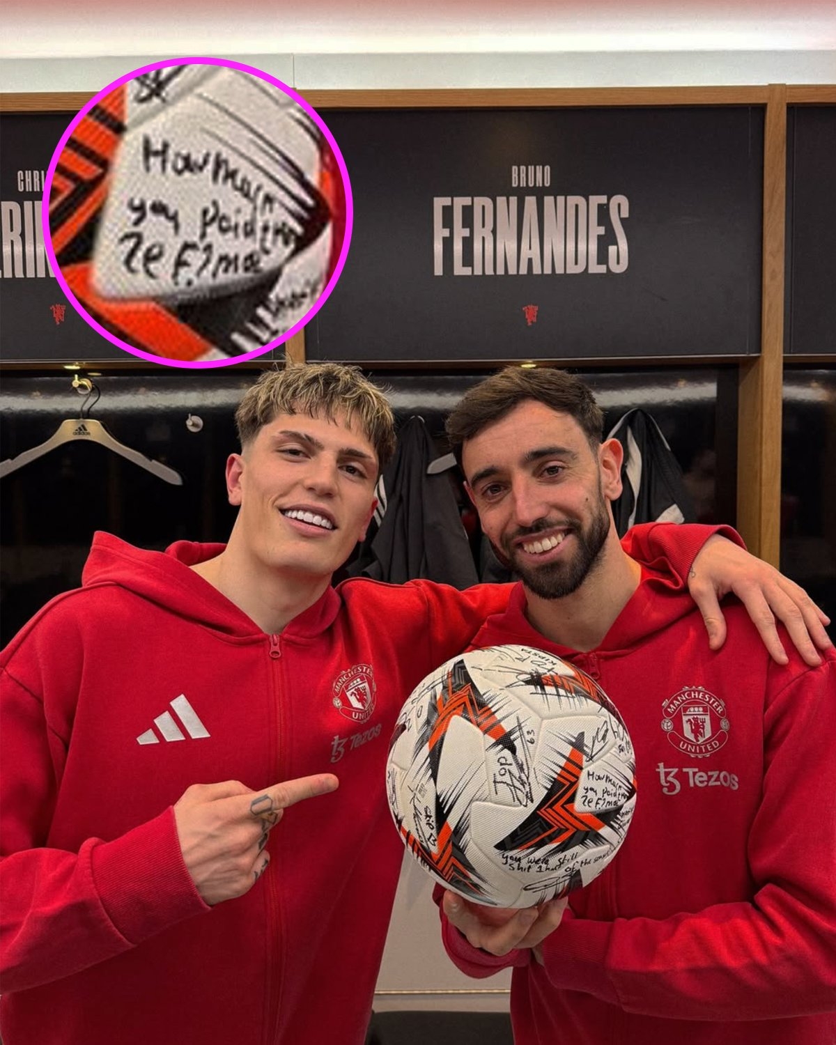 3月14日訊 歐聯(lián)杯1/8決賽次回合,曼聯(lián)主場4-1擊敗皇家社會,曼聯(lián)隊長B費本場上演帽子戲法,打進兩個點球以及一記抽射遠角破門。據(jù)報道,B費在賽后帶走了比賽用球,并在更衣室內(nèi)讓隊友在球上簽名留言,很多隊友都在足球上寫下了祝賀的話語,但有一人在足球上字跡潦草地寫著:你付給裁判多少錢?(how much you paid the ref)。 本文標(biāo)簽: 足球 英超 曼聯(lián) B費
