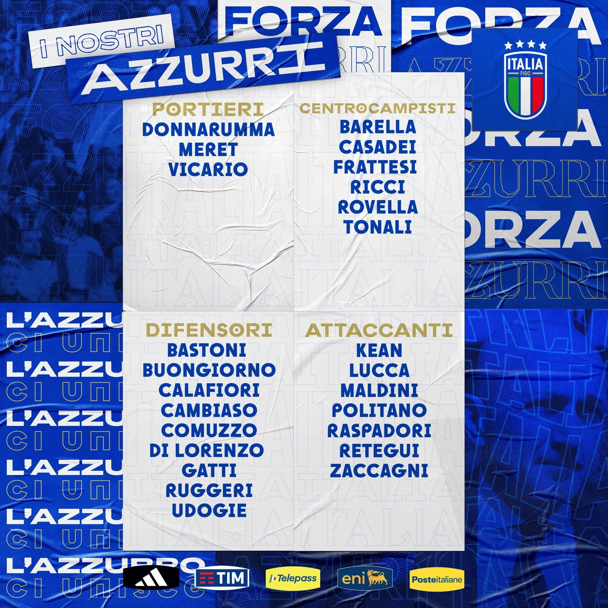 意大利名單:托納利、巴斯托尼在列,雷特吉、小馬爾蒂尼入選