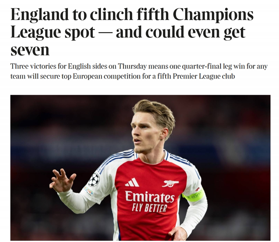 英超基本鎖定第五個(gè)歐冠名額,《泰晤士報(bào)》指出,理論情況下英超下賽季最多可以有7支球隊(duì)參加歐冠!