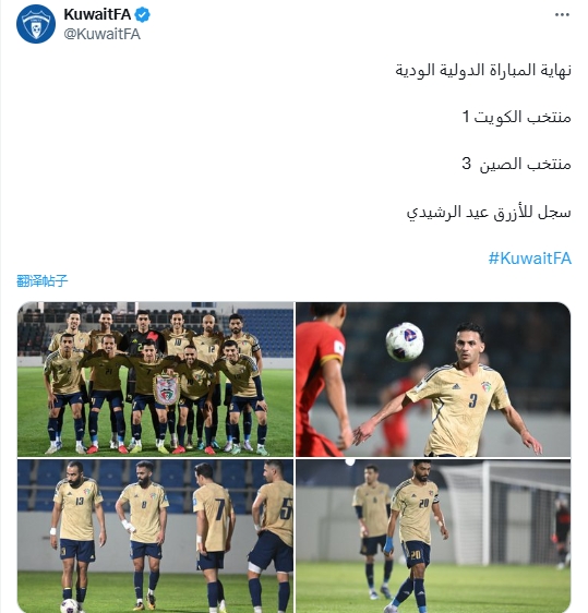 中國男足熱身賽3-1戰(zhàn)勝科威特,科威特足協(xié)社媒分享了本場比賽照片。