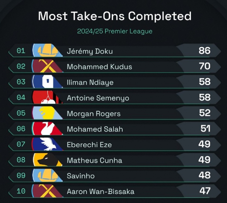 3月16日訊 曼城在本輪英超2-2戰(zhàn)平布萊頓,多庫沉迷過人備受批評。數(shù)據(jù)統(tǒng)計顯示他也是本賽季的英超過人王。