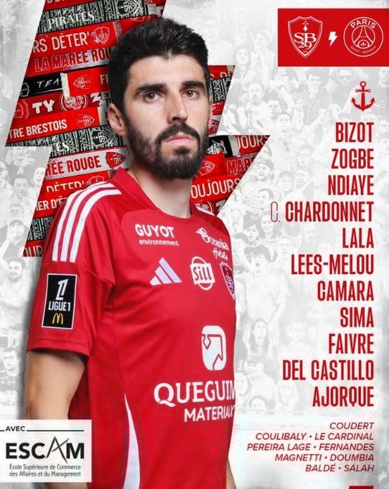布雷斯特首發(fā):40-比佐特、12-佐格貝、3-恩迪亞耶、5-沙爾多內(nèi)、7-拉拉、20-里斯-梅洛、45-卡馬拉、17-西瑪、21-法夫雷、10-卡斯蒂略、19-阿約克