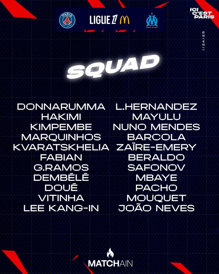 3月16日訊 北京時(shí)間明天凌晨3點(diǎn)45分,巴黎圣日耳曼將在法甲主場(chǎng)迎戰(zhàn)馬賽,巴黎現(xiàn)在公布了比賽名單。