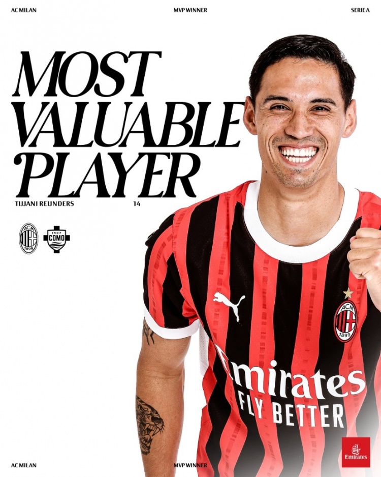 賽后,AC米蘭俱樂部官方宣布,賴因德斯當(dāng)選為本場(chǎng)比賽隊(duì)內(nèi)最佳球員。