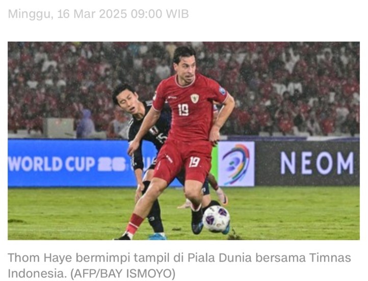 3月16日訊 據(jù)印尼媒體報(bào)道,印尼歸化國(guó)腳哈耶在接受采訪(fǎng)時(shí)談到了自己的世界杯夢(mèng)想。