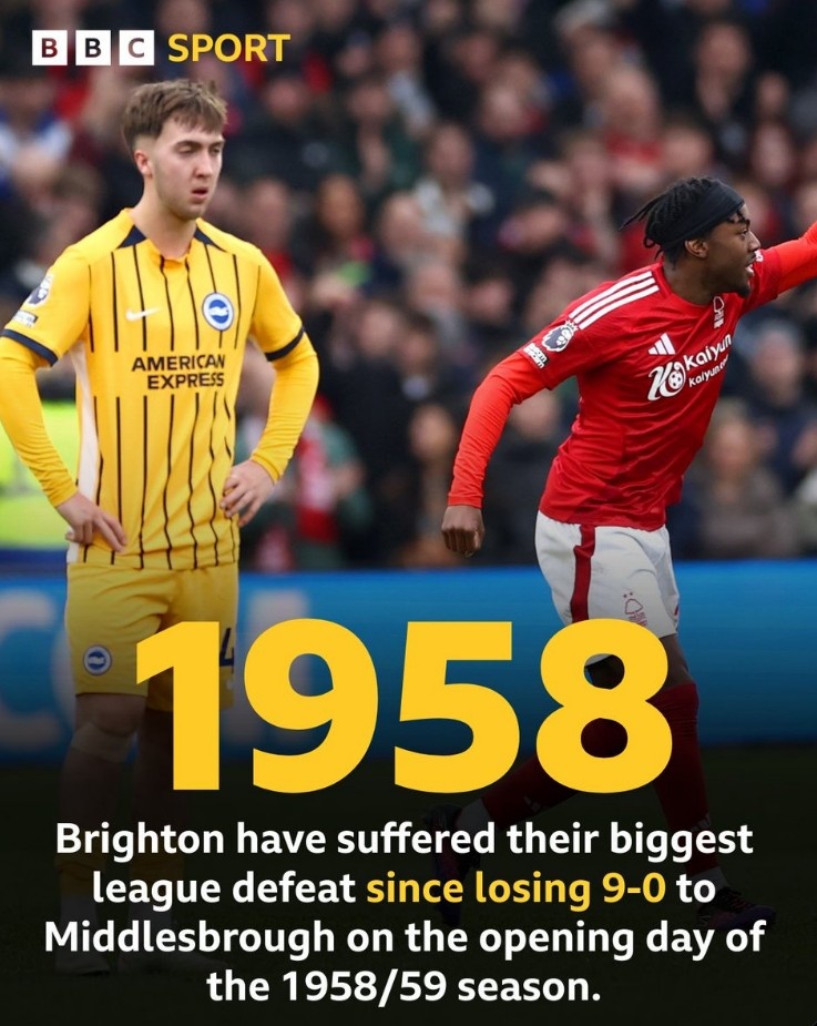 2月1日訊 在本輪英超,布萊頓0-7不敵諾丁漢森林。據(jù)統(tǒng)計(jì),本場(chǎng)比賽也是布萊頓自1958年以來在聯(lián)賽中遭遇的最大比分失利,在1958/59賽季首輪,布萊頓曾0-9不敵米德爾斯堡。 本文標(biāo)簽: 足球 英超 諾丁漢森林 布萊頓