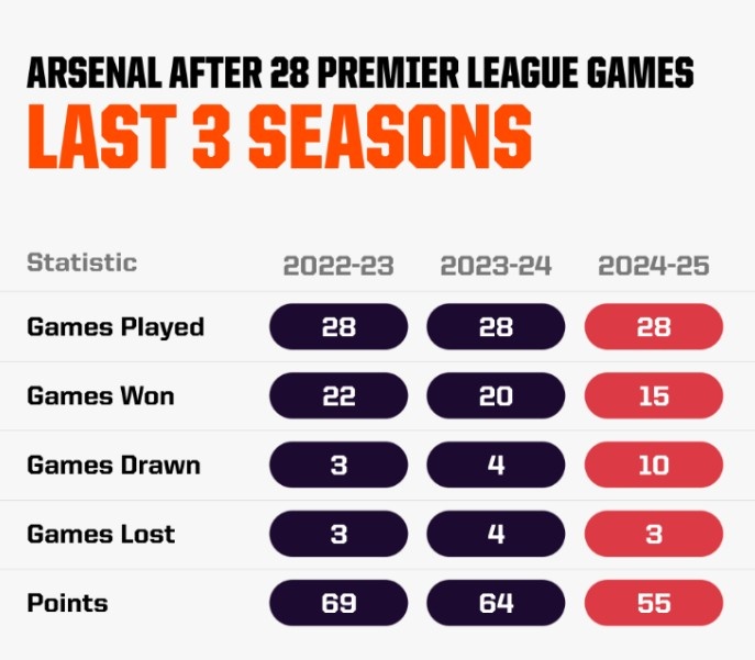 3月16日訊 在本賽季英超28輪過后,阿森納雖然高居積分榜次席,但是在少賽一場的情況下與利物浦差距已經(jīng)被拉開到15分。數(shù)據(jù)網(wǎng)站OPTA也盤點了阿森納近三個賽季28輪過后積分情況對比,具體如下:本賽季:15勝10平3負(fù),積55分23/24賽季:20勝4平4負(fù),積64分22/23賽季:22勝3平3負(fù),積69分 本文標(biāo)簽: 足球 英超 阿森納