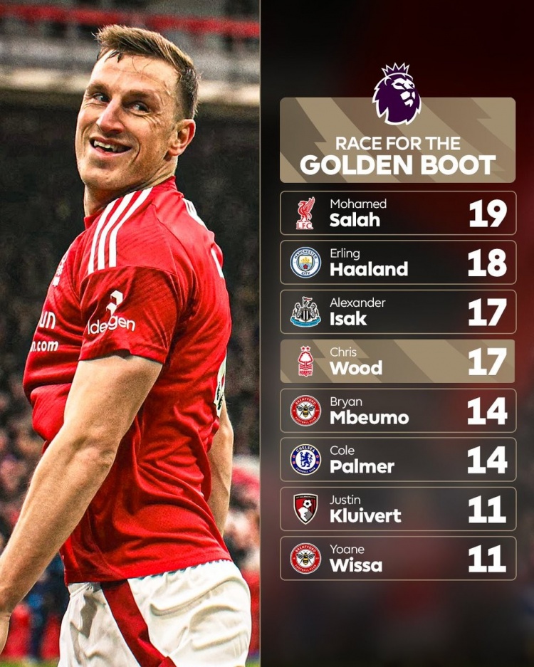 2月1日訊 諾丁漢森林在本輪英超7-0血洗布萊頓,克里斯-伍德上演帽子戲法,數(shù)據(jù)統(tǒng)計顯示他已躋身英超射手榜前三。本賽季英超射手榜:19球,薩拉赫(利物浦)18球,哈蘭德(曼城)17球,伊薩克(紐卡)、克里斯-伍德(諾丁漢森林)14球,姆貝莫(布倫特福德)、帕爾默(切爾西)11球,克魯伊維特(伯恩茅斯)、維薩(布倫特福德) 本文標簽: 足球 英超 諾丁漢森林 利物浦 曼城 紐卡斯爾聯(lián) 布倫特福德 切爾西 伯恩茅斯 哈蘭德 薩拉赫