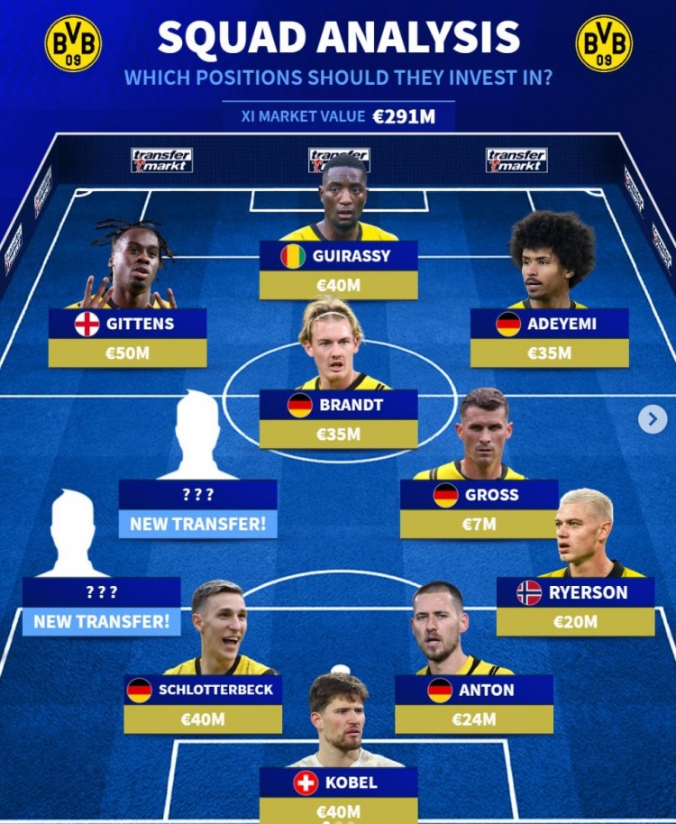 2月1日訊 多特在本賽季德甲表現(xiàn)低迷,沙欣也因此下課,《轉(zhuǎn)會(huì)市場(chǎng)》也簡(jiǎn)要列出了多特當(dāng)前主力陣,指出他們需要補(bǔ)強(qiáng)左路后防。