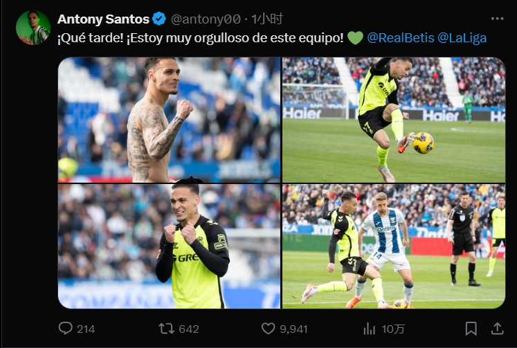 安東尼在社媒發(fā)文:“太棒了!我為球隊(duì)感到自豪?!?/p>