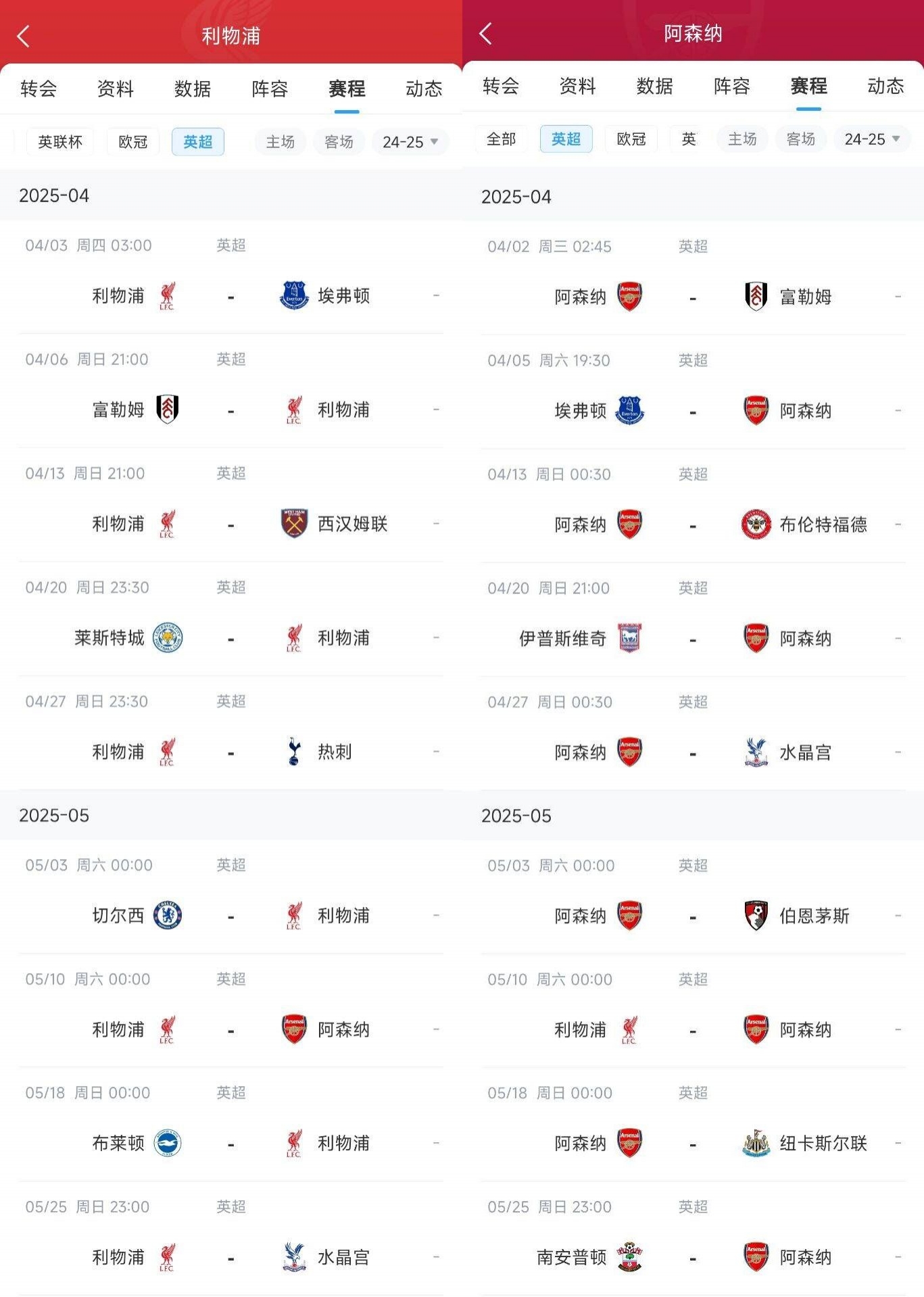 剩9輪差12分!利物浦阿森納賽程對(duì)比:第36輪交鋒,紅軍賽程略難