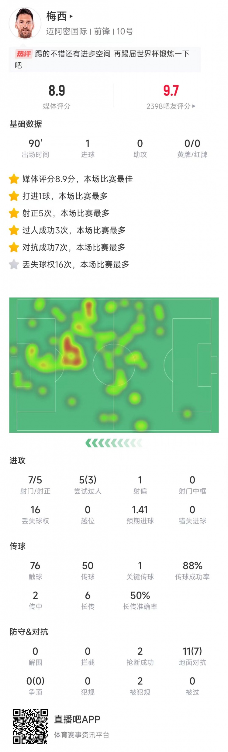 梅西本場(chǎng)比賽數(shù)據(jù):