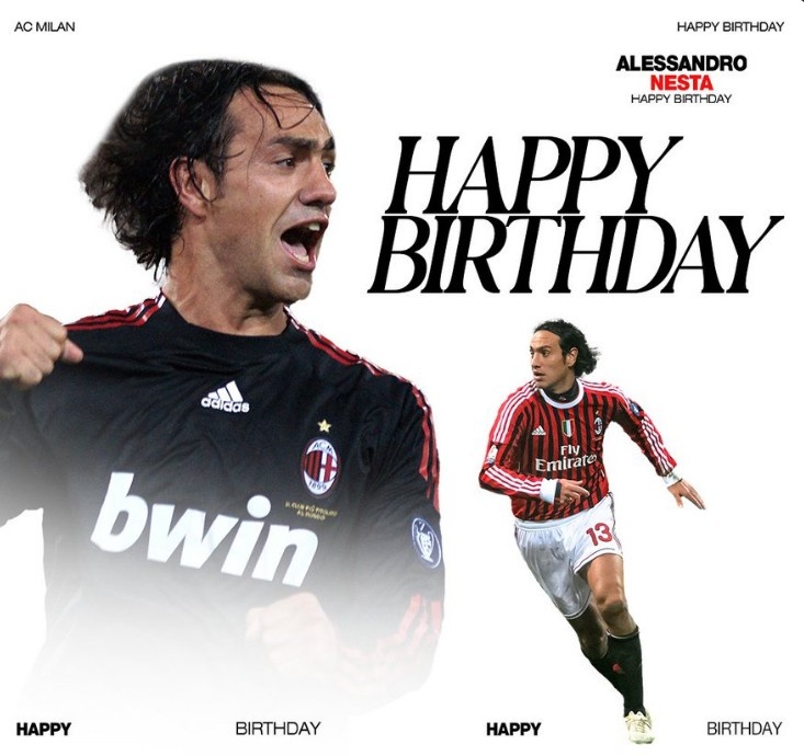 3月19日訊 今天是意大利傳奇后衛(wèi)內(nèi)斯塔49歲生日,AC米蘭官推也曬照為其送上生日祝福。