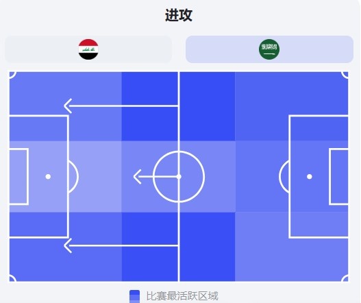 3-1勝伊拉克是他們近日打出的最佳表現(xiàn)了,看看他們的進(jìn)攻區(qū)域就知道其對(duì)邊路的重視