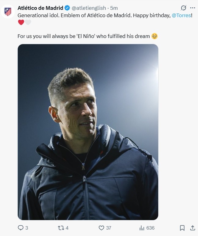 3月20日訊 今天是費(fèi)爾南多-托雷斯的41歲生日,馬競(jìng)官方更新動(dòng)態(tài)向他表示了祝賀。