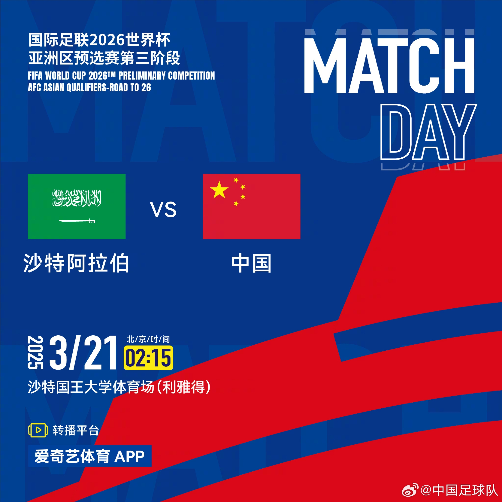 北京時間3月21日凌晨02:15,國際足聯(lián)2026世界杯亞洲區(qū)預(yù)選賽第七輪-中國國家男子足球隊(duì)將在利雅得沙特國王大學(xué)體育場對陣沙特阿拉伯國家男子足球隊(duì)。鎖定以下轉(zhuǎn)播平臺,一起為中國隊(duì)加油! 本文標(biāo)簽: 足球 國家隊(duì) 中國男足 中國足球 中超 轉(zhuǎn)載