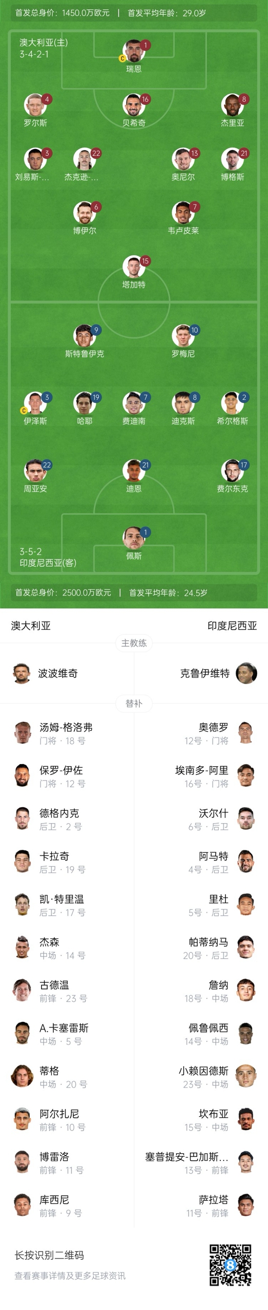 03月20日訊 國足同組對手澳大利亞vs印尼首發(fā)出爐,而雙方的身價對比已經(jīng)發(fā)生了驚人的逆轉(zhuǎn)。澳大利亞總身價1450萬歐,而印尼隊的身價則高達(dá)2500萬歐。在印尼首發(fā)中有10名來自荷蘭的歸化球員,其中身價最高的是900萬歐的希爾格斯。雙方上次交鋒,印尼還是900萬歐對3000萬歐的劣勢。 本文標(biāo)簽: 足球 中超 中國足球 國家隊 中國男足