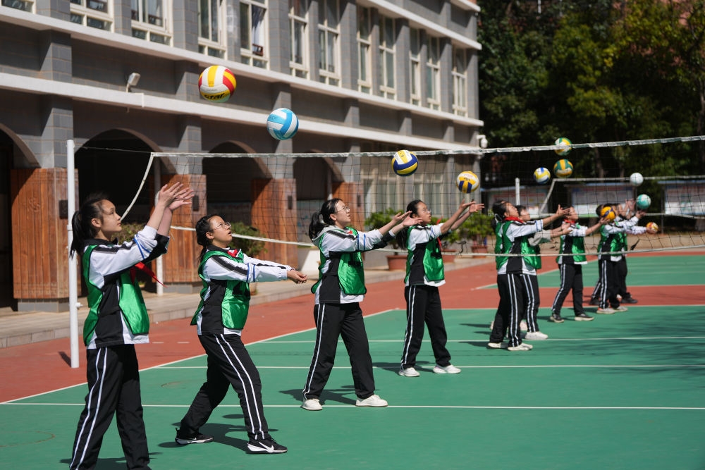 2025年2月28日,昆明市云南大學附屬中學學生在校園里練習排球。新華社記者 陳欣波 攝