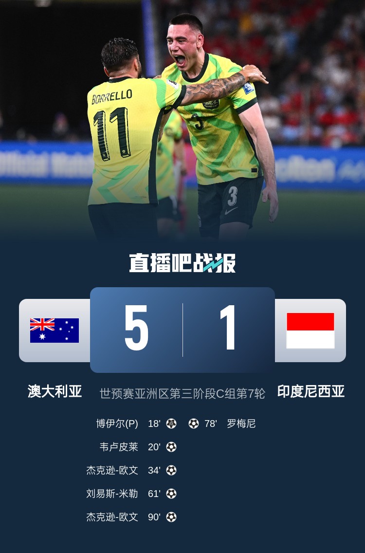 3月20日訊 世預(yù)賽亞洲區(qū)第三階段C組第7輪,10名歸化球員首發(fā)的印尼隊(duì)1-5慘敗澳大利亞隊(duì)。