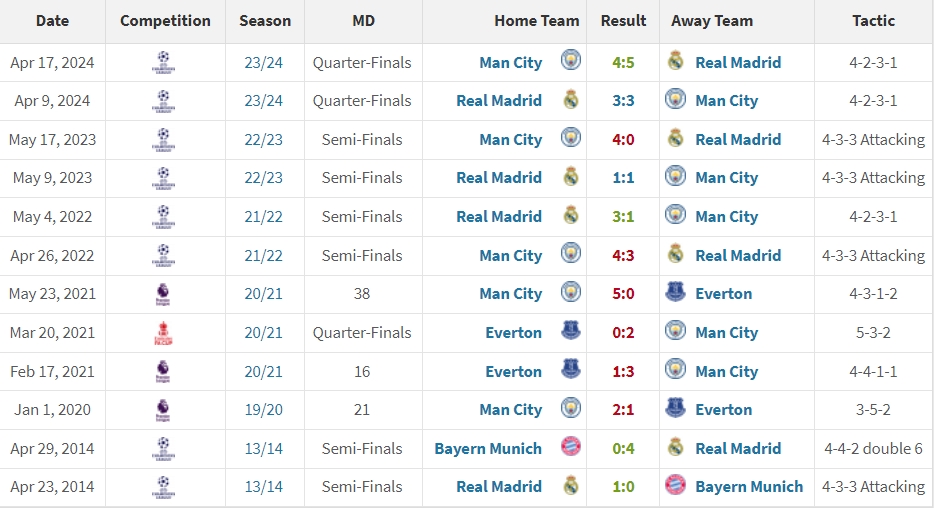 安切洛蒂與瓜迪奧拉此前共交手12場(chǎng),瓜帥6勝,安帥4勝,戰(zhàn)平2次。