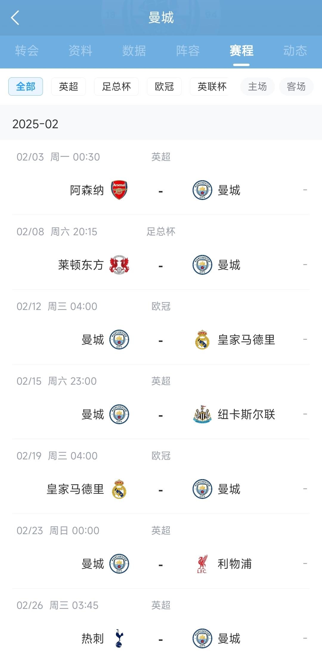 瓜帥說道:“賽程就是這樣,在英超中,每個隊都必須互相交手。但通常情況下,我們在英超的歐戰(zhàn)球隊中賽程更艱難。與皇馬的比賽很難,問題是之后的紐卡比賽(曼城與皇馬比賽完3天后踢紐卡)。”