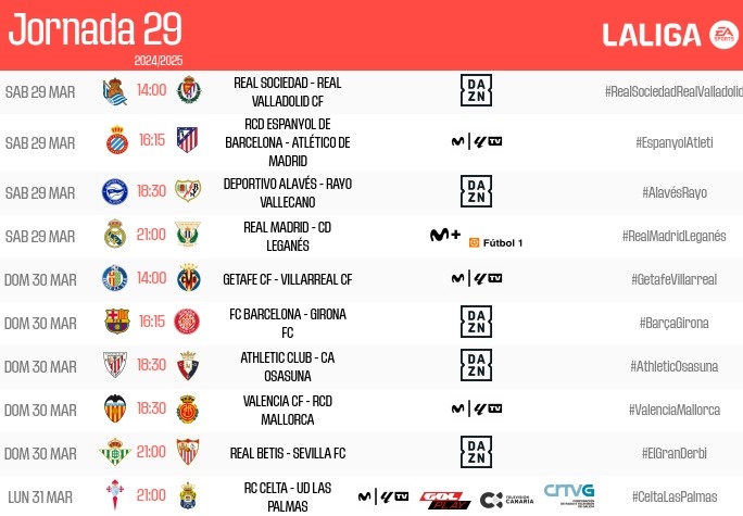 3月21日訊 由于巴薩和奧薩蘇納的補賽時間確定,西甲官方調整了聯(lián)賽第29輪畢爾巴鄂和奧薩蘇納的開球比賽,這場比賽將于北京時間31日00:30舉行。