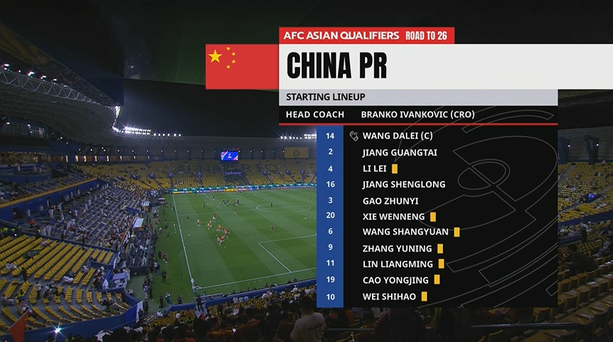 03月21日訊 今天2點(diǎn)15分,國(guó)足將在世預(yù)賽亞洲區(qū)18強(qiáng)賽中客場(chǎng)對(duì)陣沙特,兩隊(duì)首發(fā)陣容已經(jīng)公布,國(guó)足首發(fā)中有7名球員身背黃牌。
